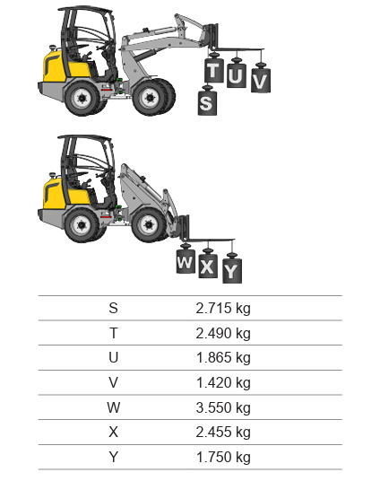 Ved arbejde med gafler skal du bruge U-værdien (1.865 kg) – den maksimale sikre løftekapacitet midt på gaflerne.